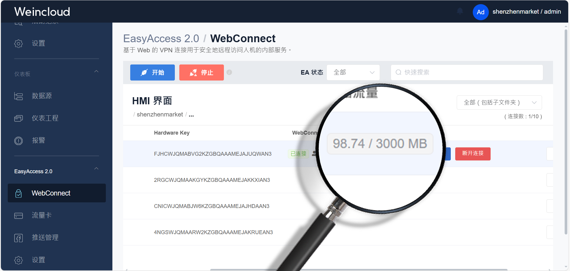 免安裝App,Weincloud推出全新網(wǎng)頁版遠程連接服務WebConnect!通過WebConnect,用戶輕松連接EasyWeb、WebView、VNC,或同一域的網(wǎng)頁服務,隨時查看并修改HMI的各項設(shè)置。