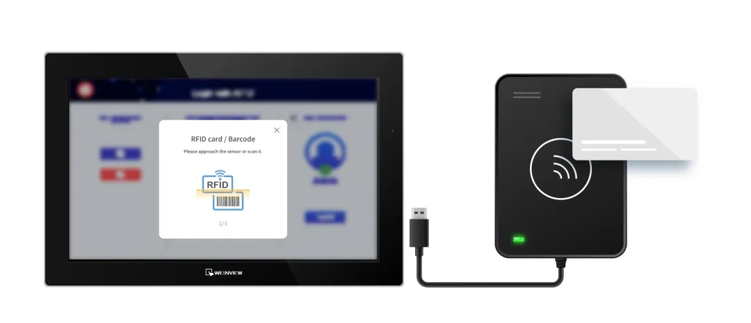 威綸通HMI通過(guò)USB連接RFID刷卡機(jī),實(shí)現(xiàn)RFID刷卡身份驗(yàn)證功能。用戶只需刷卡,即可快速登錄人機(jī)系統(tǒng),整個(gè)過(guò)程只需幾秒鐘的時(shí)間,極大地加速了身份驗(yàn)證流程。此外,企業(yè)還可以結(jié)合現(xiàn)有的門(mén)禁卡、識(shí)別證、工牌等相關(guān)證件,使管理更加簡(jiǎn)易。