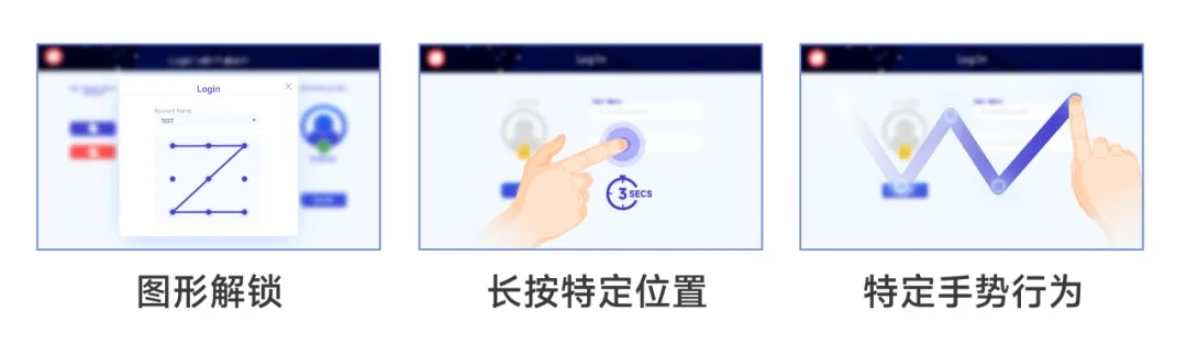 除了上述的刷卡/指紋登錄方式外,還有其它新穎的登錄方式能通過(guò) JavaScript 實(shí)現(xiàn),如手機(jī)上常見(jiàn)的圖形解鎖,或是操作行為識(shí)別,像是通過(guò)長(zhǎng)按特定位置或特定手勢(shì)行為以登錄人機(jī)系統(tǒng)。這些登錄方式跨越傳統(tǒng),為用戶帶來(lái)了更新穎的操作體驗(yàn)。