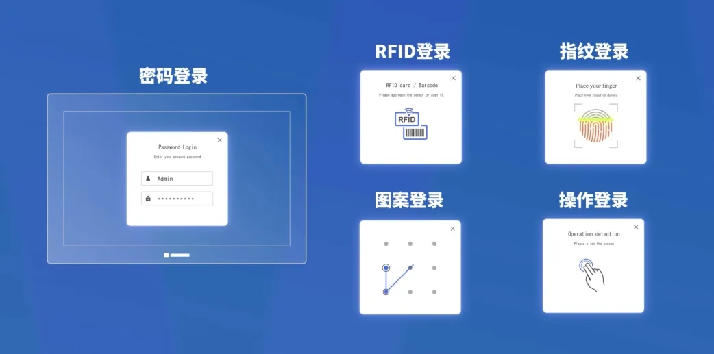 為了滿足市場(chǎng)需求,威綸通推出了多樣化的登錄方式,包括RFID刷卡、指紋識(shí)別和手勢(shì)滑動(dòng)等,以提升身份驗(yàn)證的安全性和用戶體驗(yàn)感。