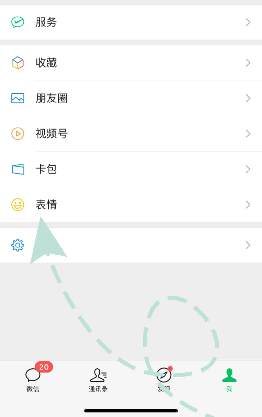 打開微信點擊“我”點擊“表情”選項