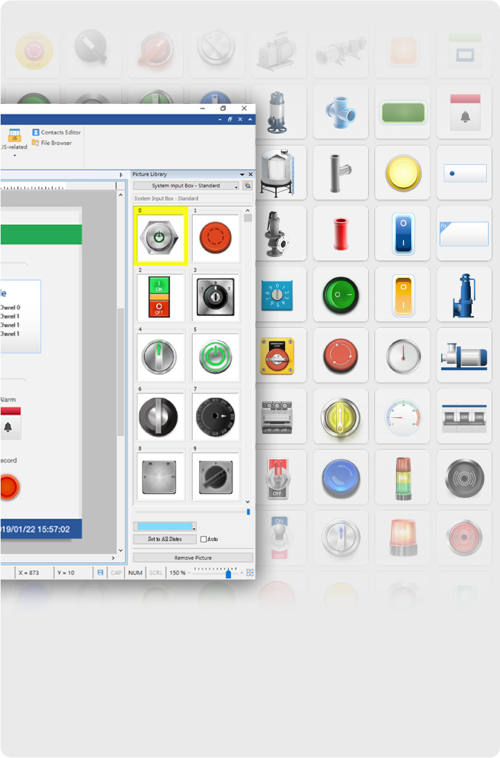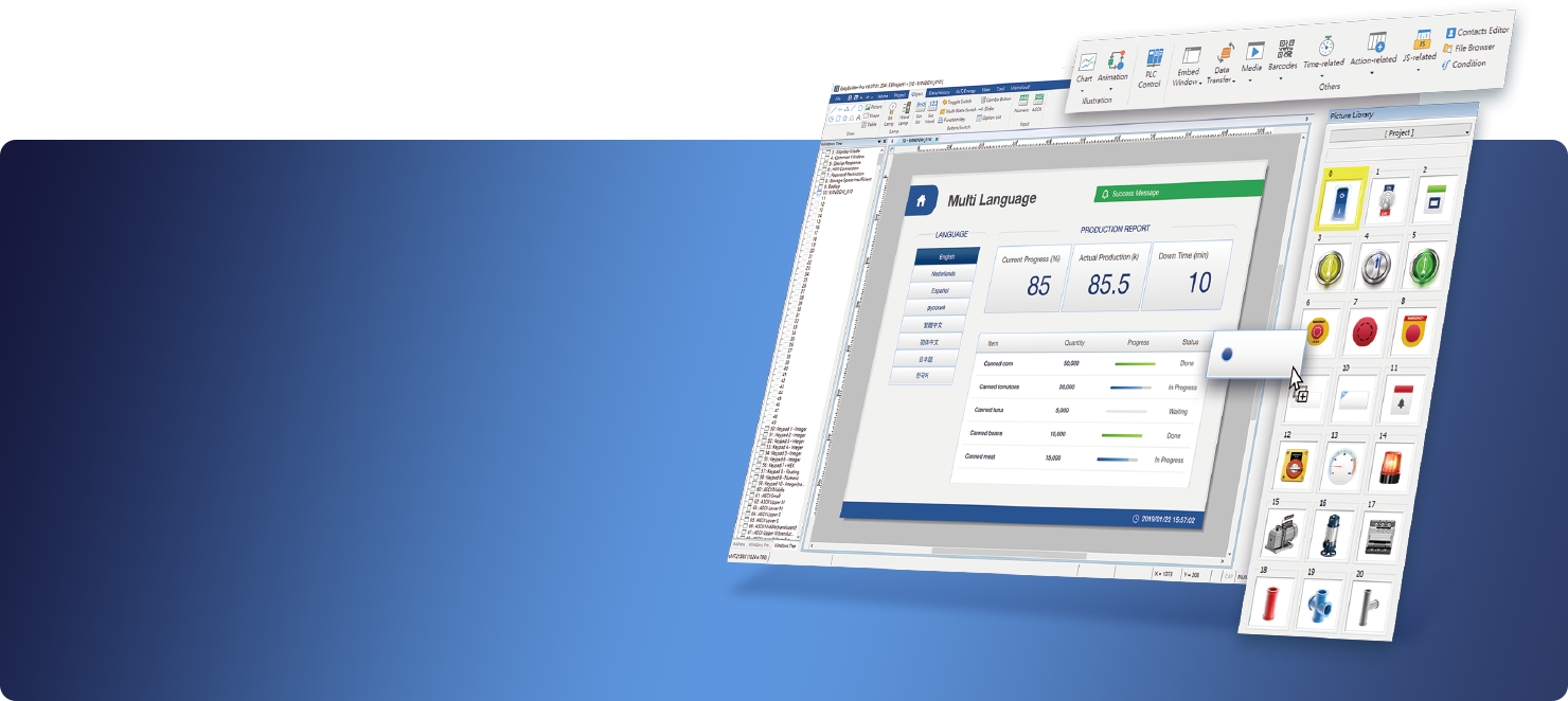 腳本指令語法簡單易用,即使是新手也能快速上手。運(yùn)用腳本能靈活實(shí)現(xiàn)數(shù)據(jù)擷取、復(fù)雜運(yùn)算和邏輯判斷等操作,強(qiáng)化HMI的能力與應(yīng)用彈性。