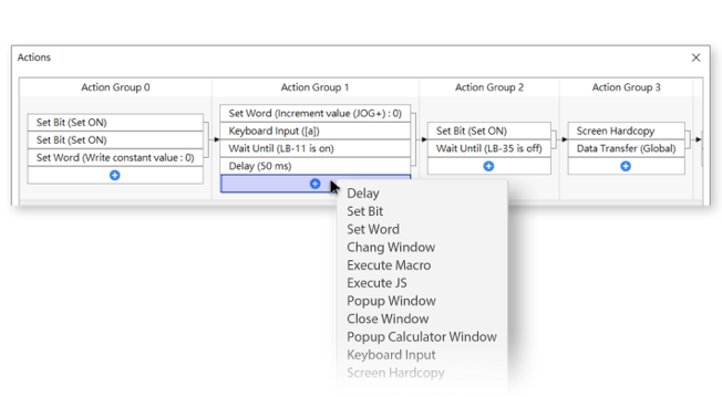 即使是復(fù)雜的連續(xù)動(dòng)作組合,都可以快速又簡單地透過圖像化介面設(shè)定,且不必撰寫程式碼即可完成。